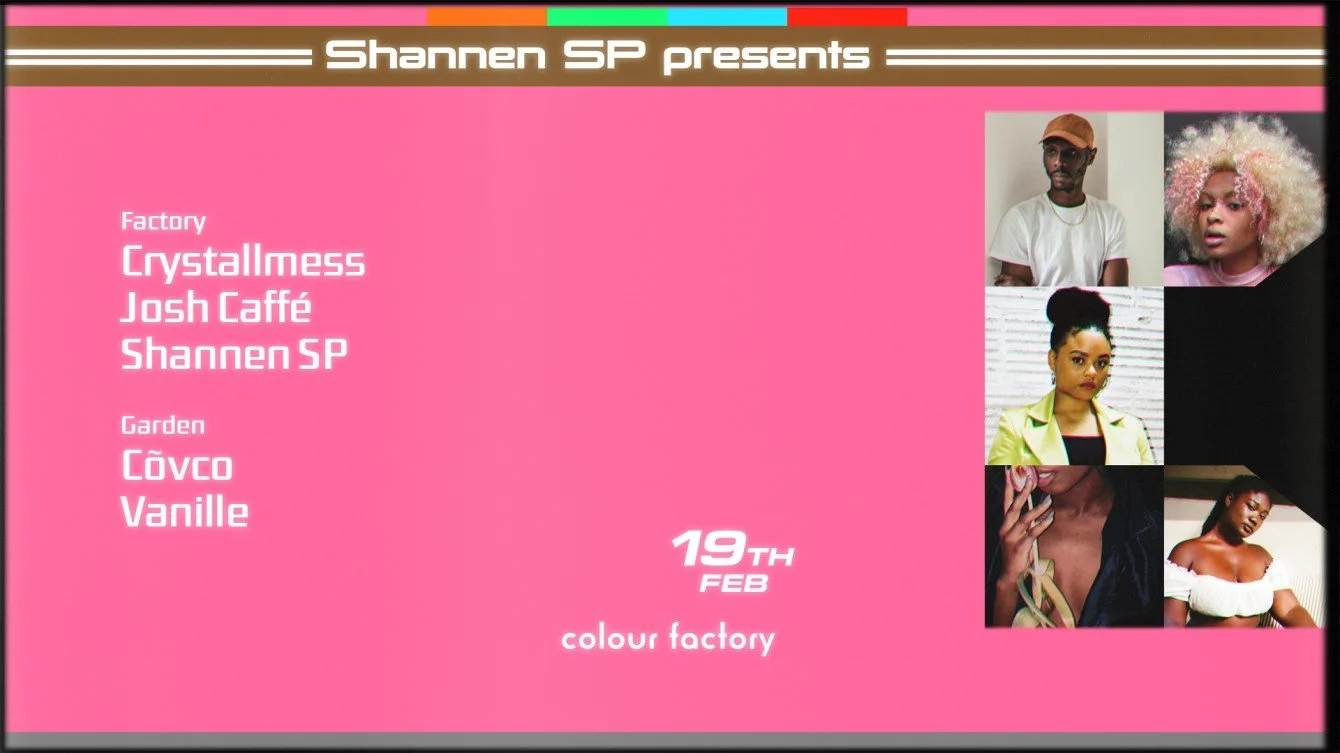 She has since moved to co-founding and running the Nine Nights collective which was created in order to platform black artists and contributors to music, visual and performance arts both in front of and behind the scenes. In 2021, Shannen was a big part of Colour Factory. Performing and curating nights on multiple occasions.