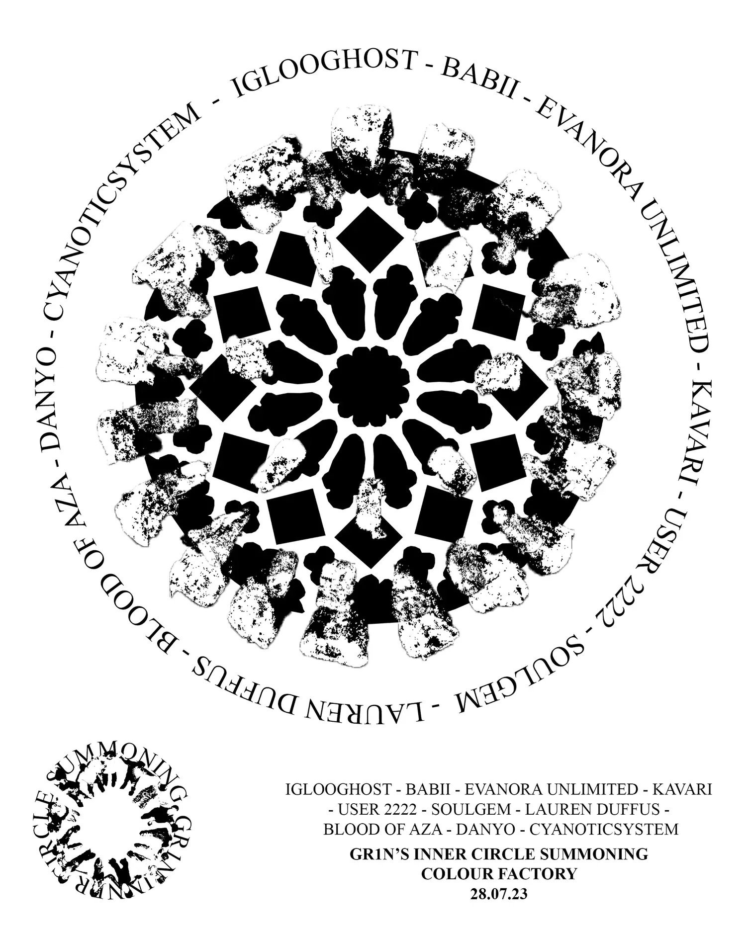 Bringing fresh blood, IGLOOGHOST, BLOOD OF AZA, LAUREN DUFFUS and EVANORA UNLIMITED join cult acolytes BABII, KAVARI, SOULGEM, USER222 and CYANOTIC SYSTEM on July 28th ⛓
