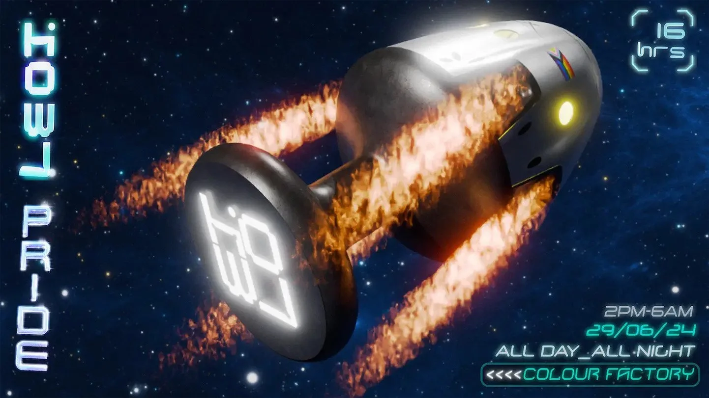 After the HUGE SUCCESS of our Day to Night Pride Party last year, we are returning to the Colour Factory for a special 15 HOUR EVENT!! Look forward to a Garden Party, Bouncy Castle and Queer Market stall during the day followed by some SPECIAL GUEST PERFORMANCES, leading to a massive NIGHT RAVE a la HOWL, this is going to be our biggest party yet.