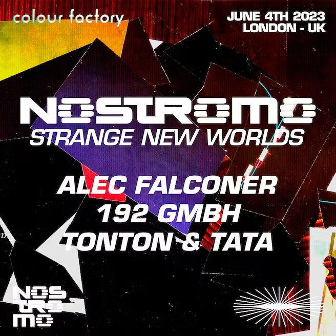 Nostromo : Strange New Worlds Sunday, June 4, 2023 2:00 PM 11:00 PM Google Calendar ICS Buy Tickets The NOSTROMO spaceship lands for a garden party session! 9 hours spanning house to UK garage…