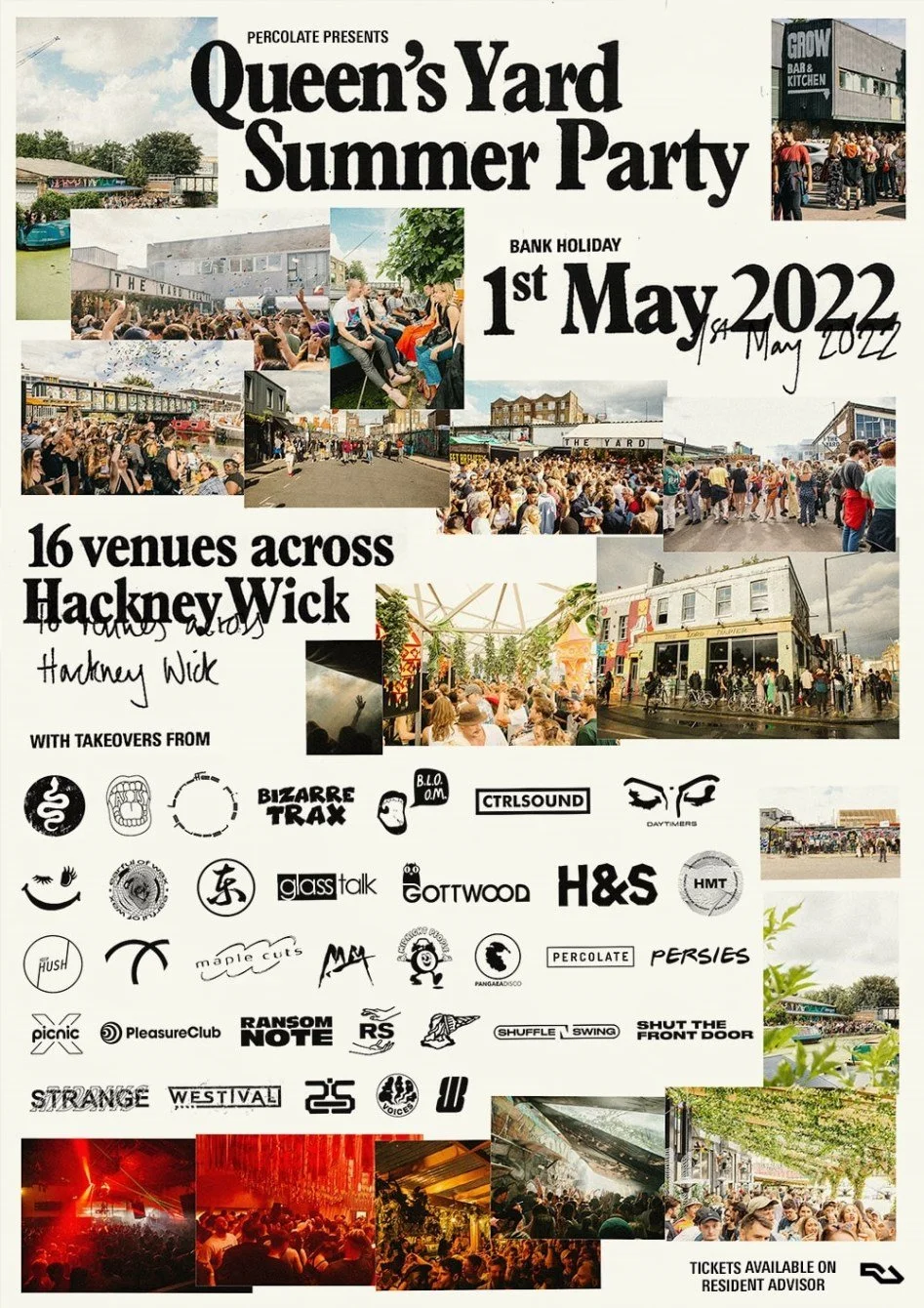 Welcome to Queens Yard Summer Party 2022 🎉🎊🥳 This year we are going to be in good company with 30+ of the finest party crews the UK has to offer, seeing in the summer on the 1st of May and kicking festival season off with a bang 💥💥💥