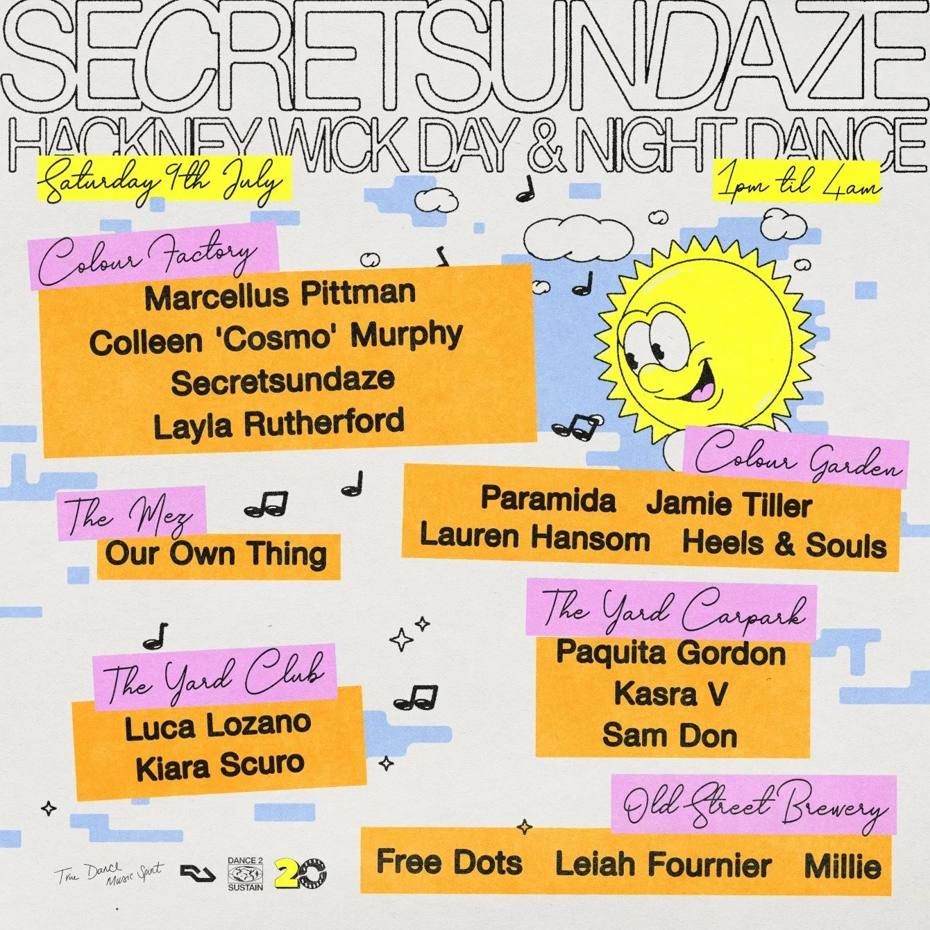 Secretsundaze are hosting a a 15-hour day & night dance between Colour Factory, The Yard and Old Street Brewery.