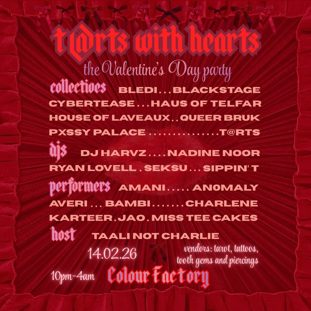 This isn’t your average Valentines day party - it’s Tarts With Hearts: a sexy, full-throttle night of DJs, collectives, voguing battles, pole dancing, performances, vendors, and more + the Launch of Taali Not Charlie’s new club night Tarts!